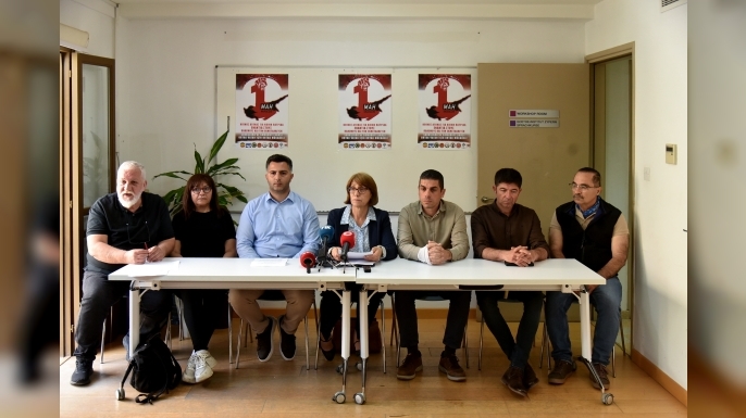 Dünya Sendikalar Federasyonu’na üye Tüm Kıbrıs İşçi Sendikaları Federasyonu (PEO), Devrimci İşçi Sendikaları Federasyonu (DEV-İŞ), Kıbrıs Türk Amme Memurları Sendikası (KTAMS), Kıbrıs Türk Öğretmenler Sendikası (KTÖS), Kıbrıs Türk Orta Eğitim Öğretmenler Sendikası (KTOEÖS), Belediye Emekçileri Sendikası (BES), Kooperatif Görevlileri Sendikası (KOOP-SEN), Doğu Akdeniz Üniversitesi Akademik Personel Sendikası (DAÜ-SEN) düzenlenecek yürüyüş ve etkinlikle ilgili Dayanışma Evi’nde basın toplantısı düzenledi.