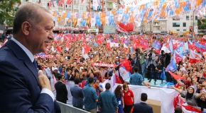 Katılımcılar, Erdoğan'ın, "24 Haziran'da güçlü Meclis için, Cumhurbaşkanlığında şahsımı, Meclis'te AK Parti'yi desteklemeye hazır mıyız? 24 Haziran'da güçlü Meclis olmanın yanında güçlü hükümet için Cumhurbaşkanlığında şahsımı, Meclis'te AK Parti'yi desteklemeye hazır mıyız? 24 Haziran'da güçlü Türkiye için Cumhurbaşkanlığında şahsımı, Meclis'te AK Parti'yi desteklemeye hazır mıyız?" sorularına "Evet" yanıtını verdi.