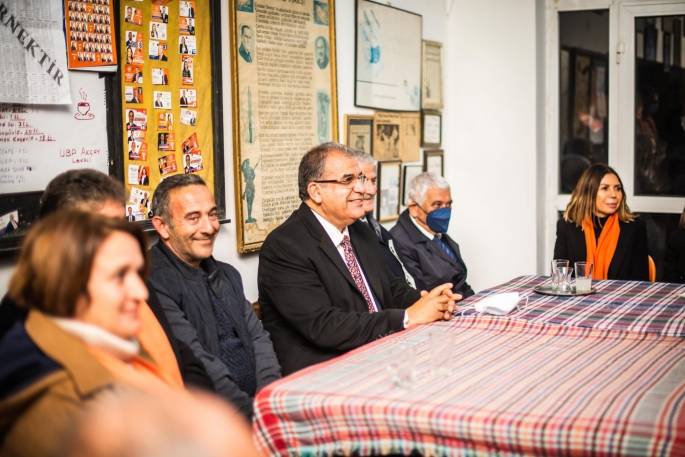 Daha sonra UBP Akçay Örgüt binasında partililerle bir araya geldi.