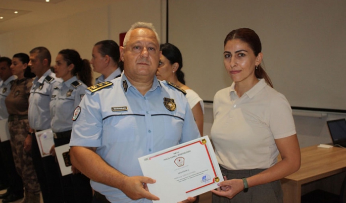 İlçe ve PGM Bölüm Müdürlüklerinde görev yapan 19 personelin katılımıyla gerçekleşen kursun tamamlanmasının ardından, Polis Okulu Müdürlüğünde düzenlenen törenle Polis Okulu Müdürü Hüseyin Kadir ÇETE tarafından başarılı olan personele sertifikaları verildi.