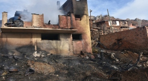 Yangında, bir inek, iki buzağı ile 20 kovan arı telef oldu.