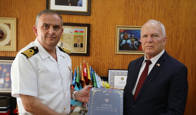 Gazimağusa Deniz Komutanlığı’nda görevli Yaman, kabulde Başkan Töre’ye Deniz Kuvvetleri Komutanı Oramiral Dr. Ercüment Tatlıoğlu tarafından hazırlanan “Kıbrıs Barış Harekatı’nda Türk Deniz Kuvvetleri” isimli kitabı takdim etti.